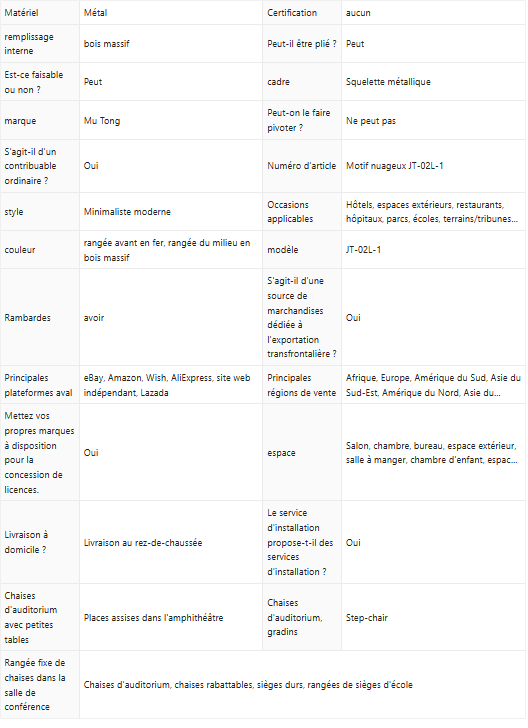 Soyez le premier à laisser votre avis sur “Chaises d’auditorium personnalisées, chaises en rangées, chaises multimédias à gradins, chaises de salles de conférence/amphithéâtres scolaires, sièges de navires de croisière”